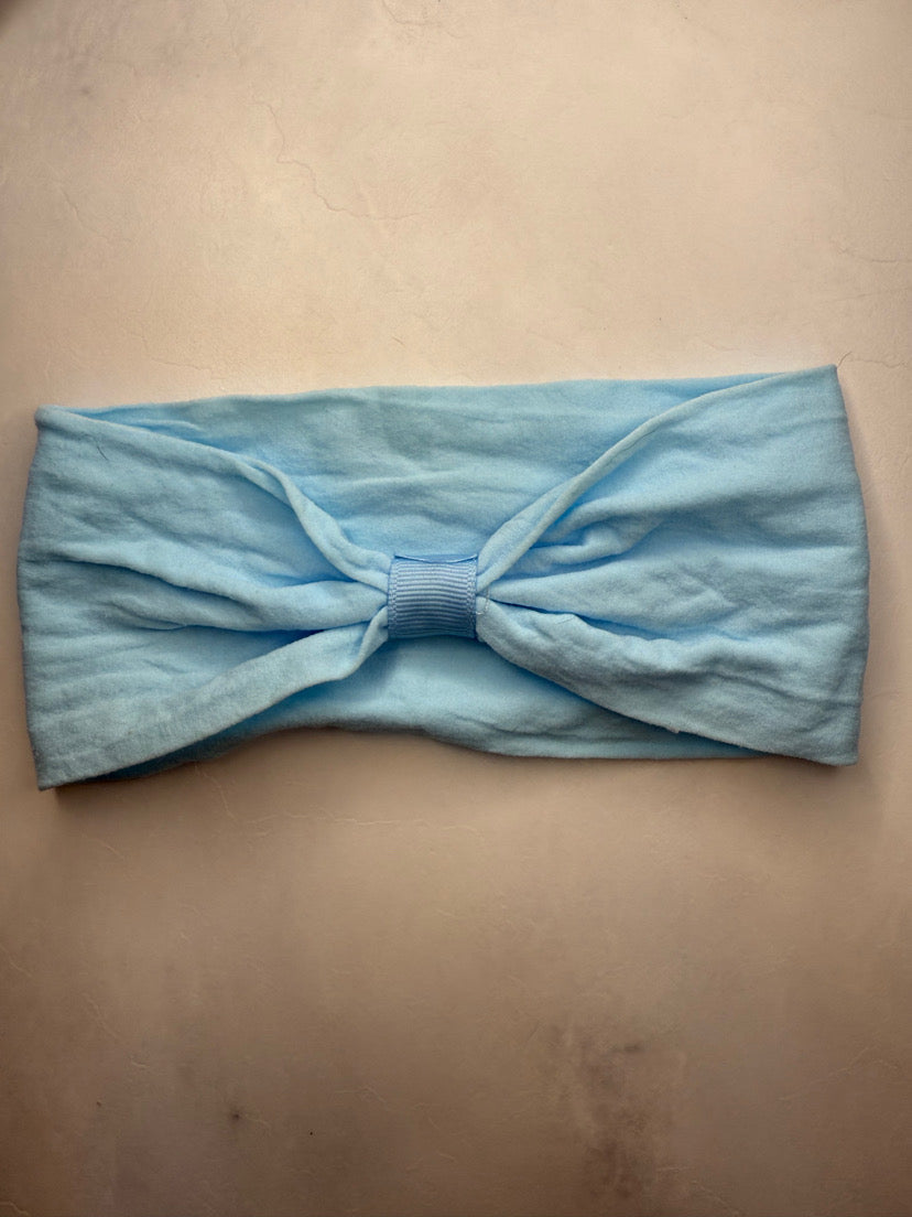 Blue interchangeable head wrap that can hold any bow on an alligator clip